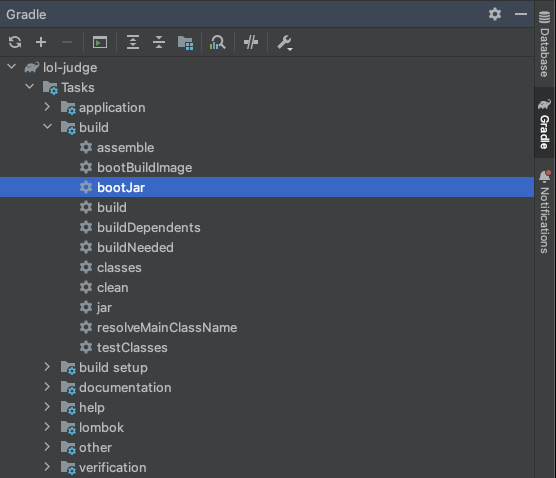 bootJar Task를 사용하면 Executable jars 를 빌드할 수 있는데, 이 Task는 java 플러그인을 적용하면 자동으로 생성된다. assemble(buld) Task는 bootJar Task에 의존하기 떄문에 해당 Task를 실행하면 bootJar Task가 자동 실행된다.