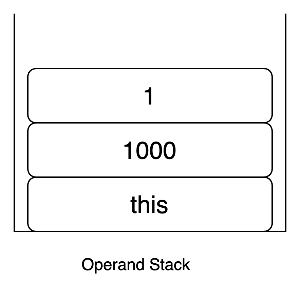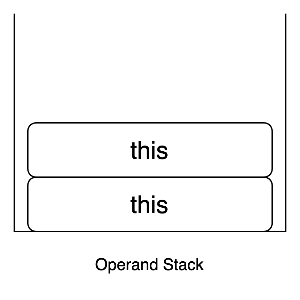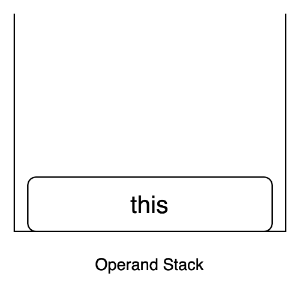 각 메서드들은 계산에 필요한 매개변수를 Local variables 라고 부르는 배열에 넣고 관리합니다. 일반적인 인스턴스 메서드의 경우, 이 배열의 0번째는 this 를 가리킨다. ALOAD 0은 Local variables 의 0번째 값 (=this) 를 피연산 스택에 push 하는 연산입니다.