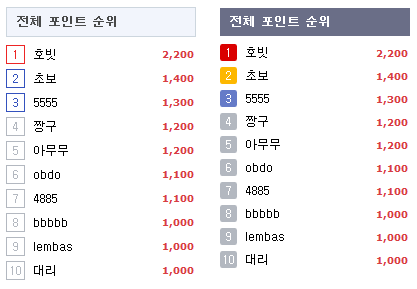 많은 서비스에서 이런 순위 페이지를 제공하고 있습니다. 어떻게 구현할 수 있을까요? (포인트는 전부 다르다고 가정하겠습니다.)