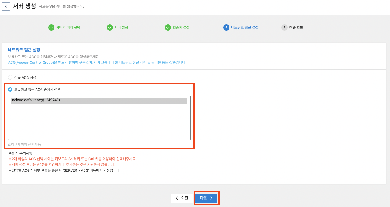 기본으로 제공하는 ACG를 선택해 줍니다.